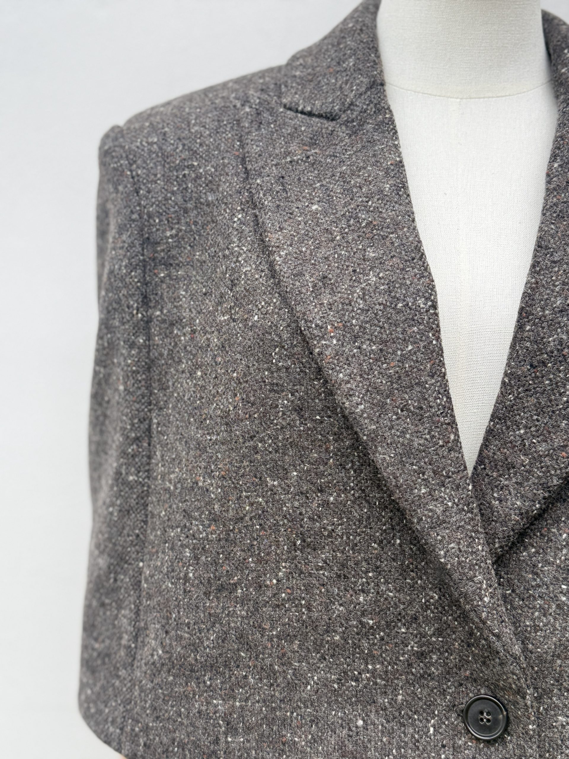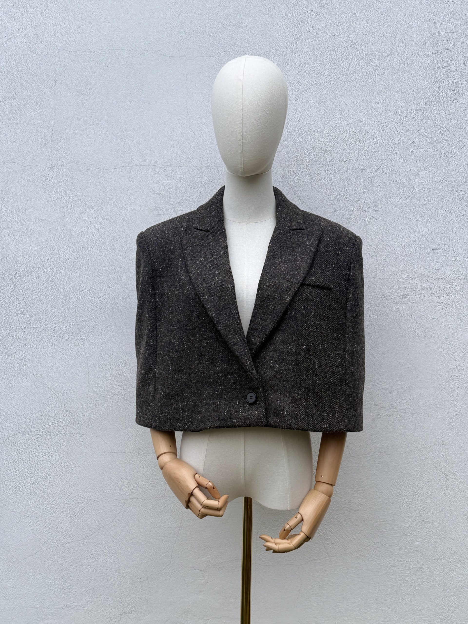 O piesă sculpturală, cu linii curate și o textură bogată de lână. Croiul scurt, tip sacou, oferă un aer modern și rafinat, perfect pentru layering și pentru ținute elegante de sezon. Interiorul este complet căptușit cu vâscoză ,pentru confort și o așezare impecabilă.