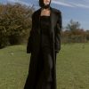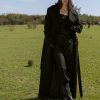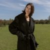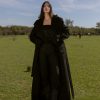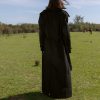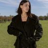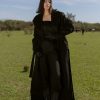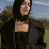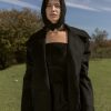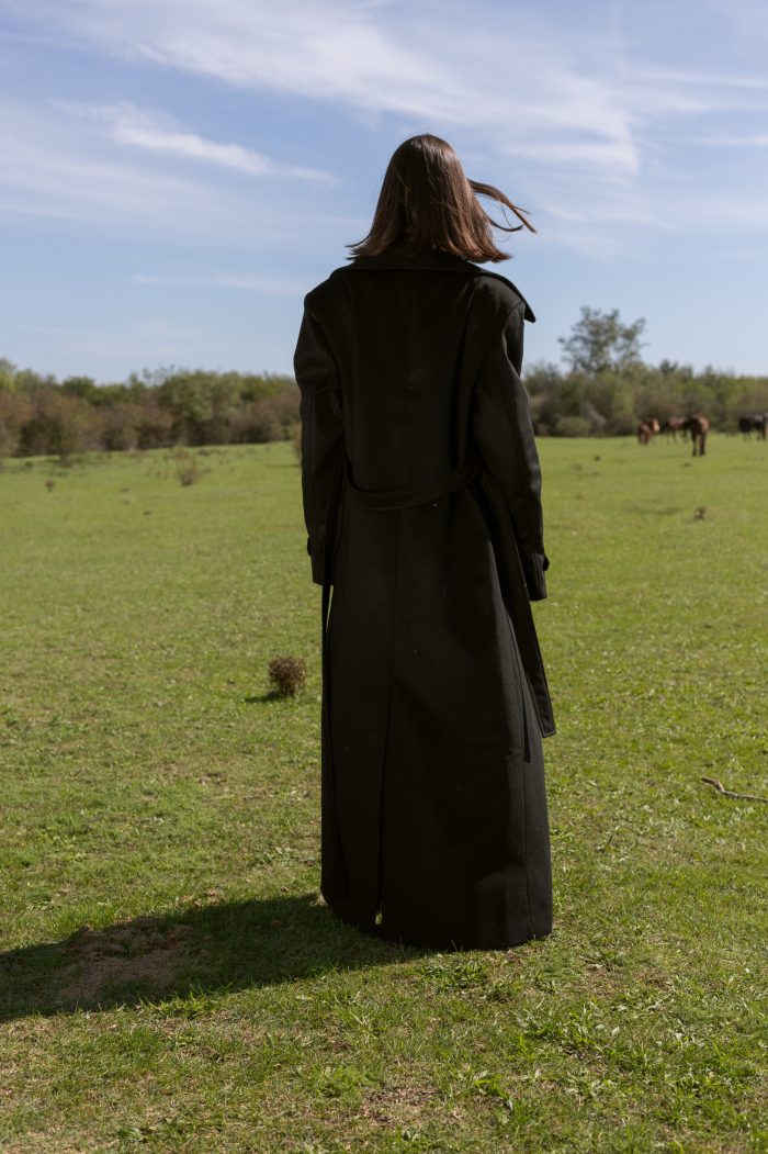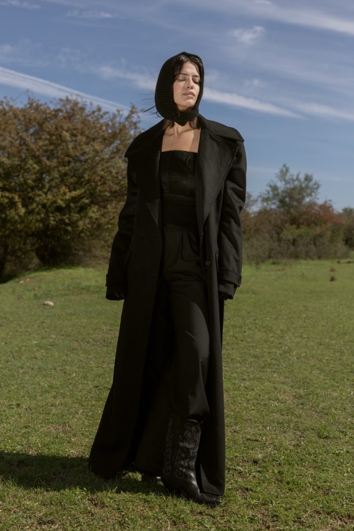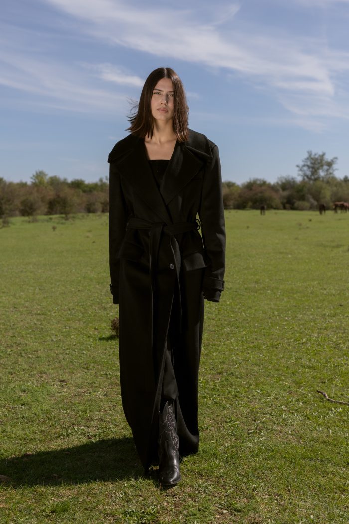 Palton maxi din lana cu cordon si umeri supradimensionati.
