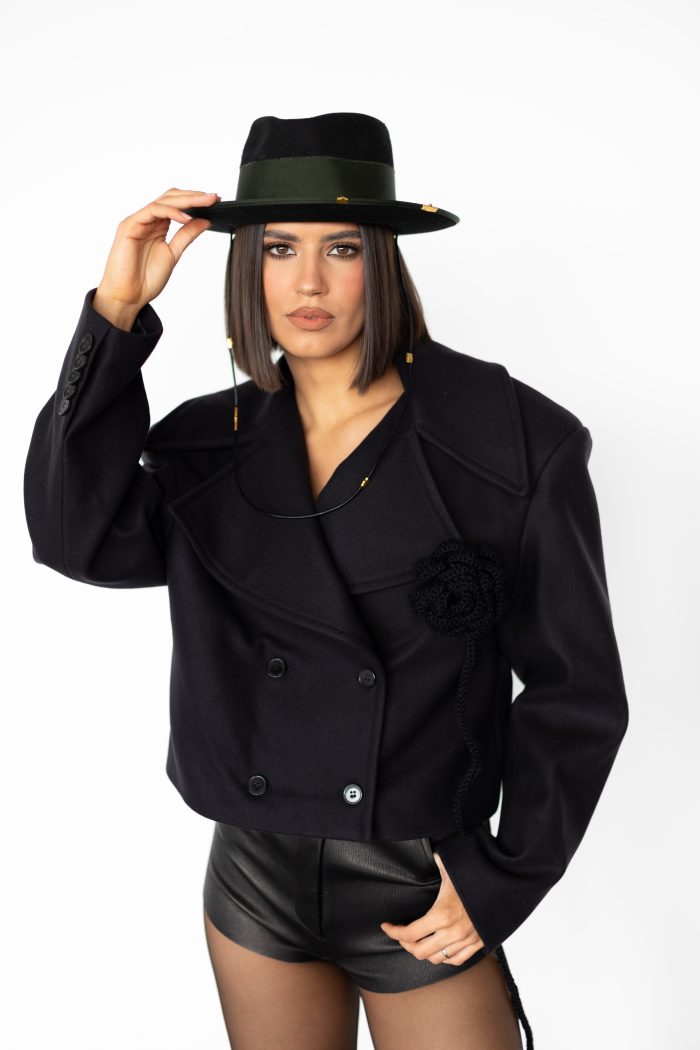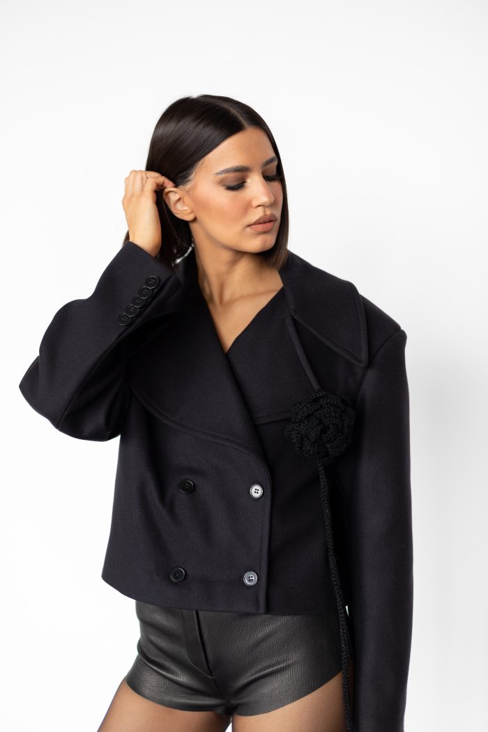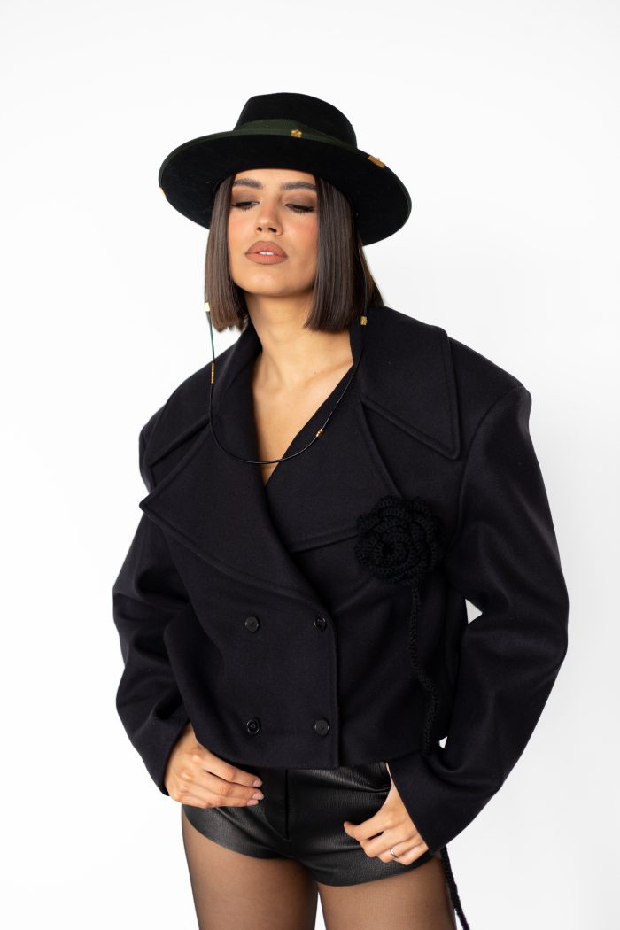 Jacheta supradimensionata din lână,cu buzunare laterale.
