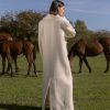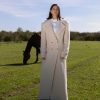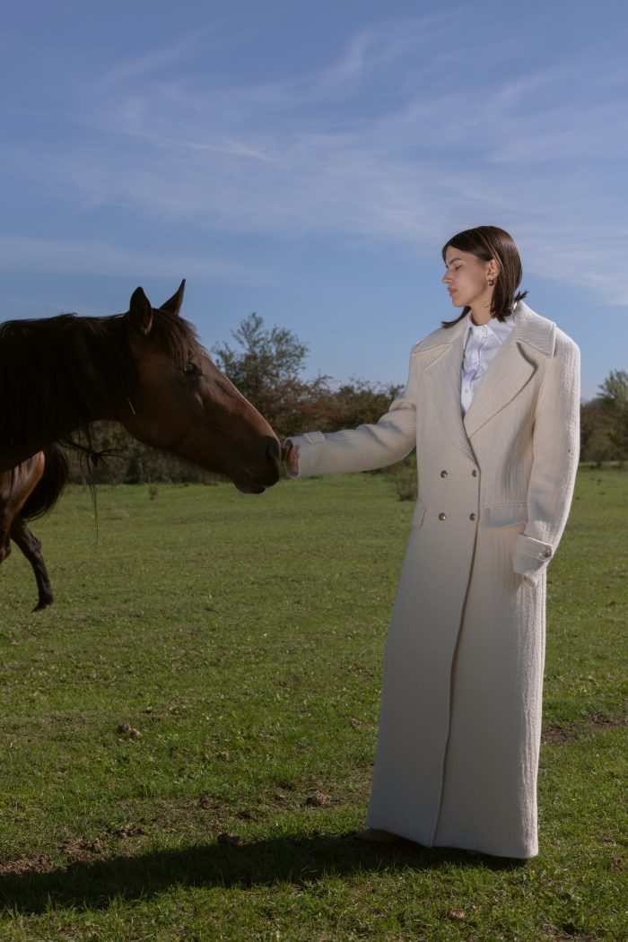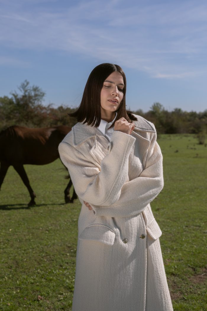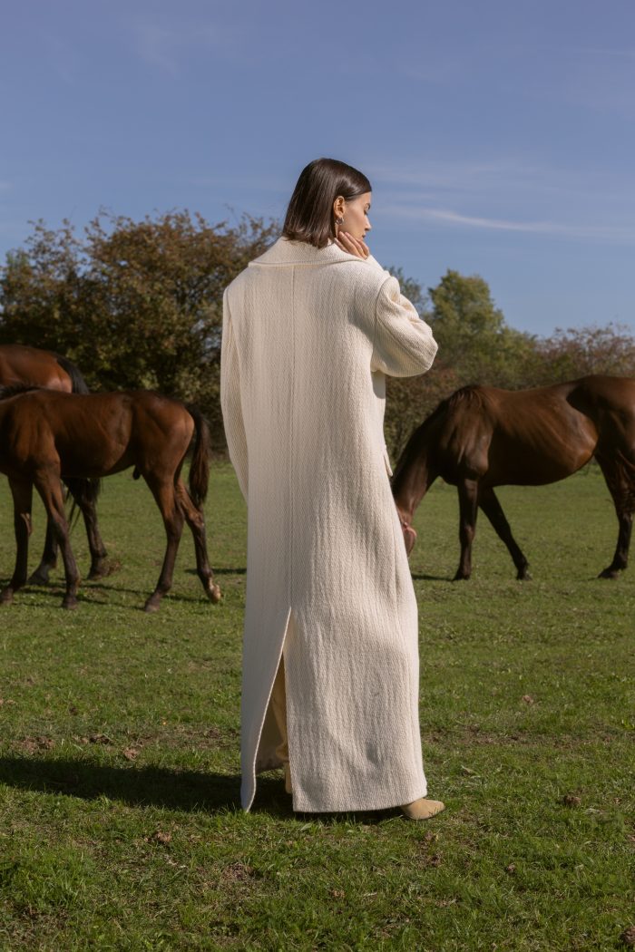 Palton maxi din lana si umeri supradimensionati.