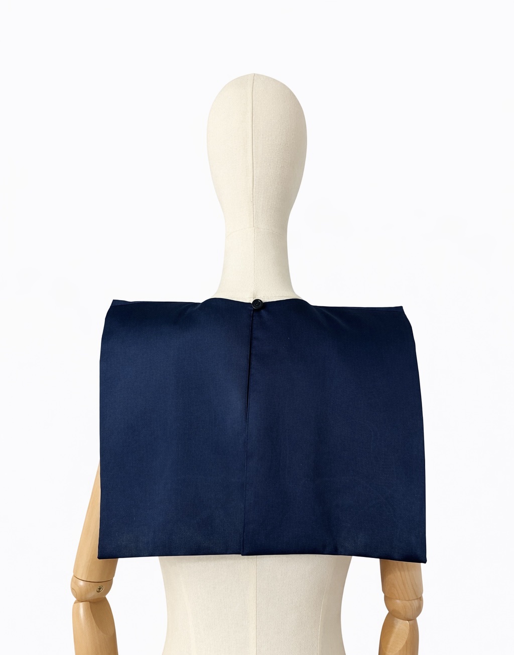 Realizat din organza de mătase, acest guler detașabil se remarcă prin textura sa fină și ușor translucidă, care oferă volum fără greutate.