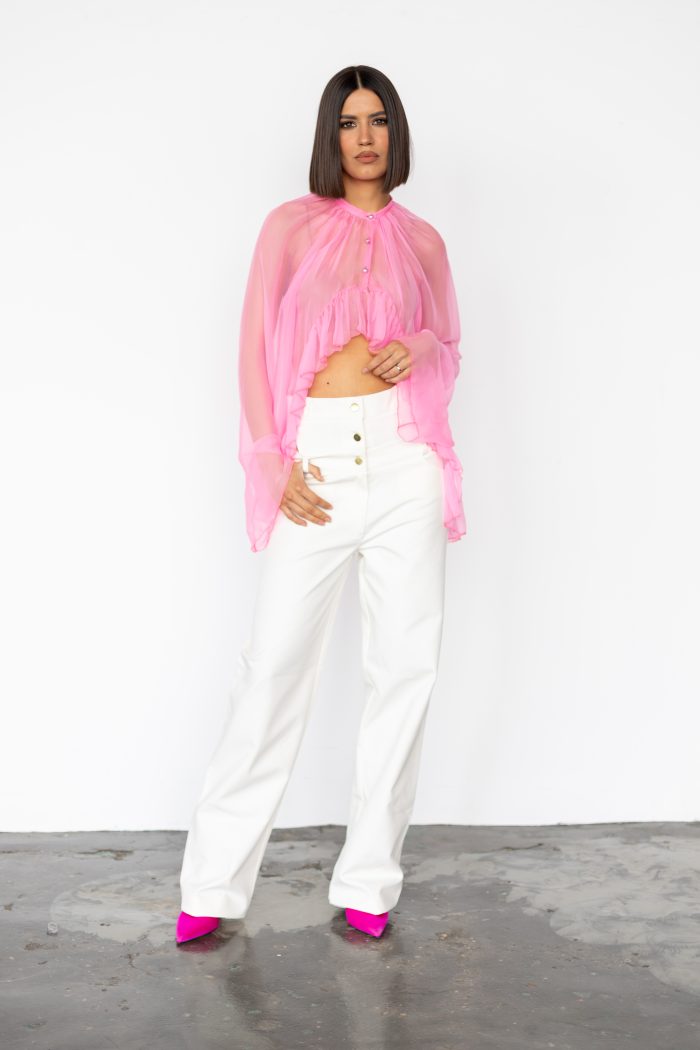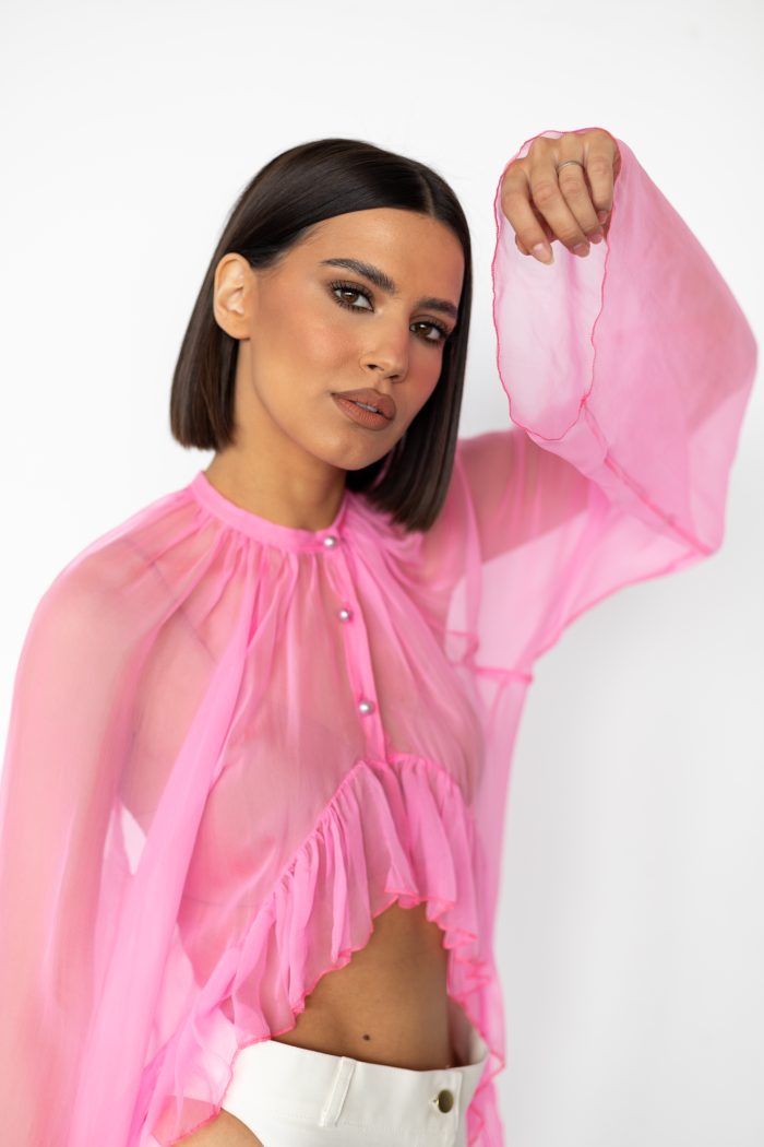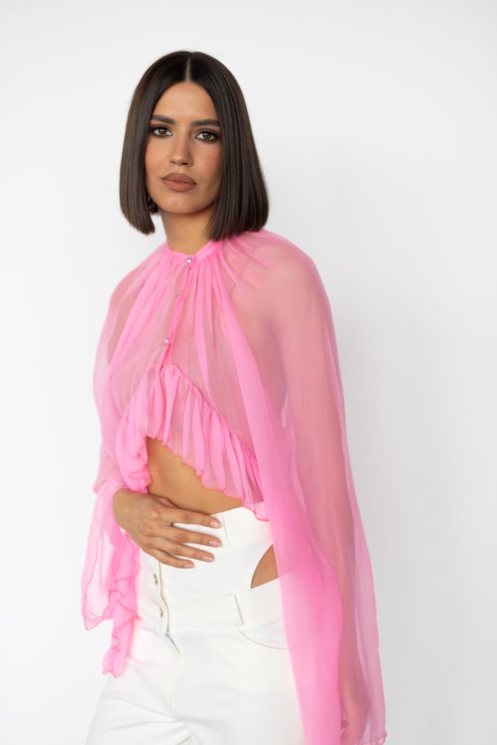 Top fucsia din matase naturala